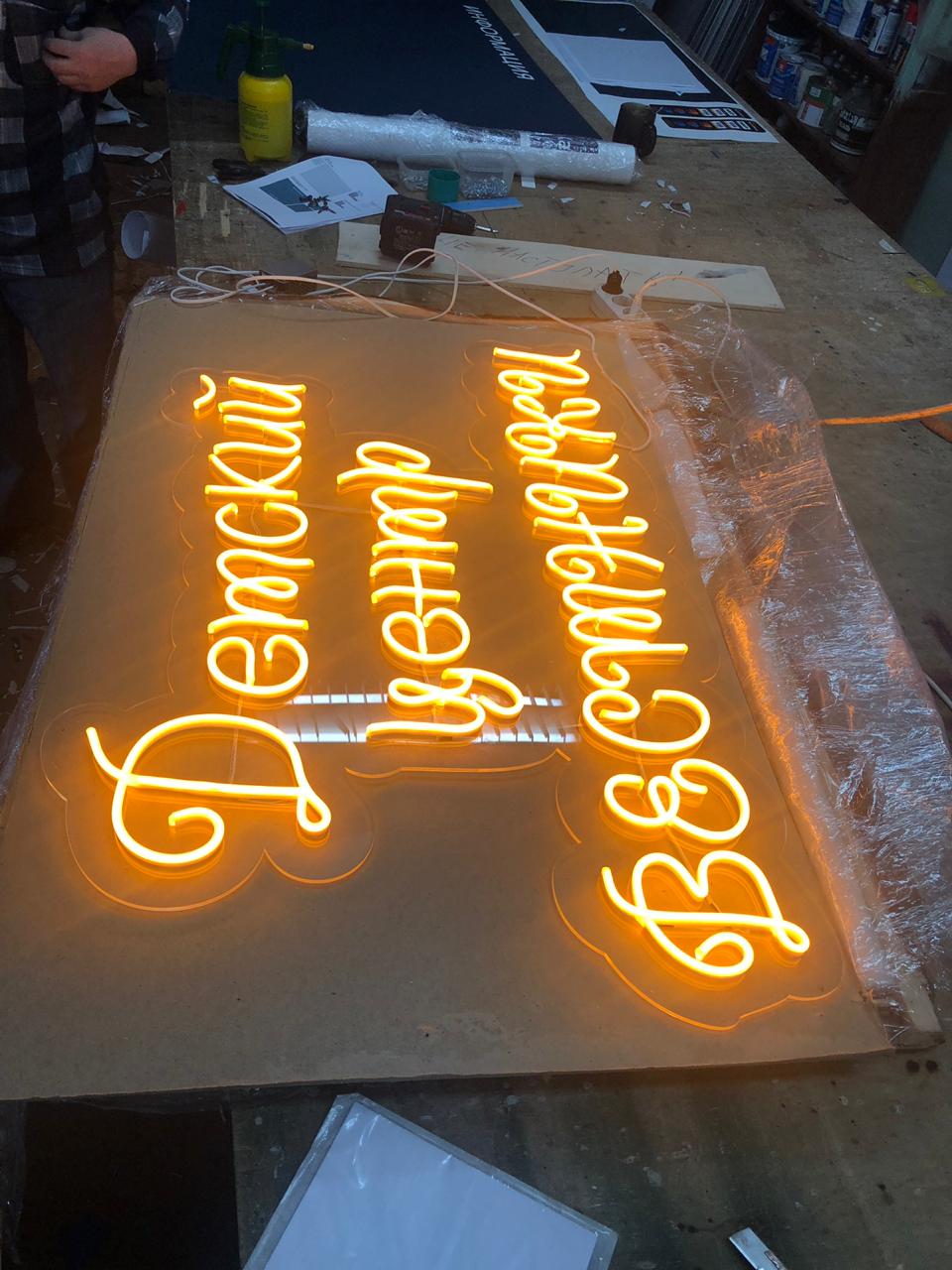 Мы изготавливаем неоновые вывесок в собственном цехе, поэтому сроки всегда под контролем.